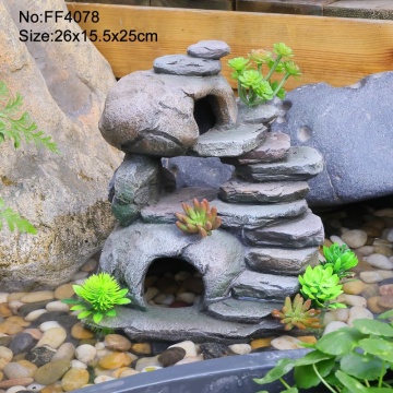 Display succulents, small flowers, or decorative stones alongside cascading water.